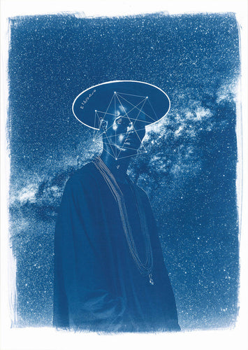 Each final image is hand-printed using the cyanotype process which rich Prussian blue, historically associated with royalty, becomes a tribute to ancestral legacy.